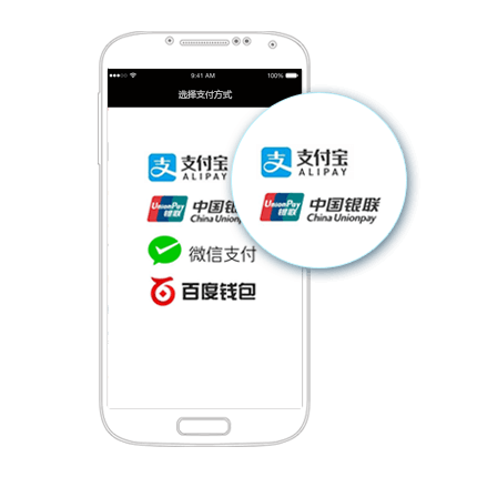 东英聚合支付平台,为iOS/Android原生/H5 App提供支付解决方案:支持微信支付、支付宝支付、银联手机支付、百度钱包等。
